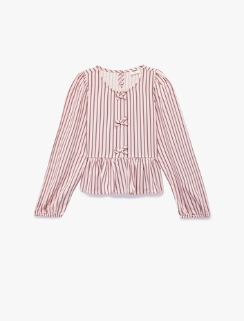 Uzun Kollu Bisiklet Yaka Fiyonk Detaylı Viskon Çizgili Bluz Sepete Ekle