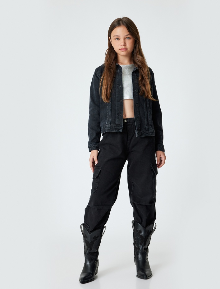Kız Çocuk Jogger Kot Pantolon Kargo Cepli Düğmeli Pamuklu