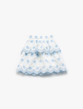Kız Çocuk Beli Lastikli Çiçek İşlemeli Katlı Pamuklu Etek