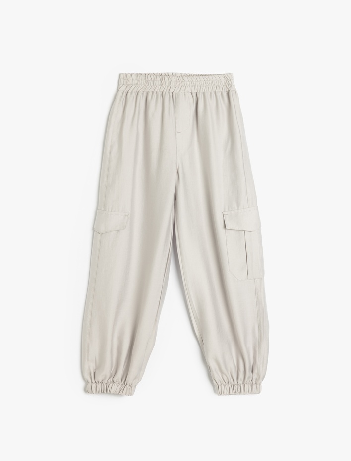 Kız Çocuk Cep Detaylı Beli Lastikli Kargo Jogger Pantolon