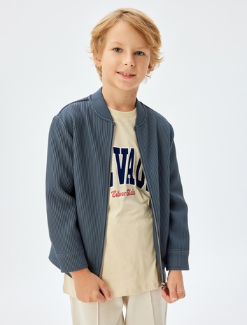 Erkek Çocuk Mevsimlik Mont Uzun Kollu Bisiklet Yaka Fermuar Kapamalı Ribanalı