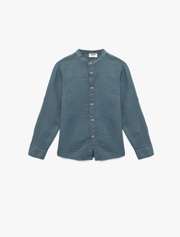 Erkek Çocuk Pamuklu Uzun Kollu Düğmeli Müslin Hakim Yaka Gömlek