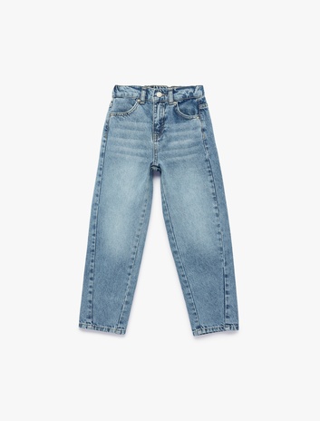 Beli Lastikli Düğmeli Rahat Kesim Denim Pantolon Sepete Ekle