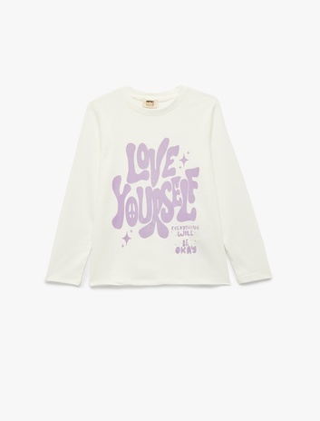 Pamuklu Uzun Kollu Bisiklet Yaka Baskılı Tişört Sepete Ekle