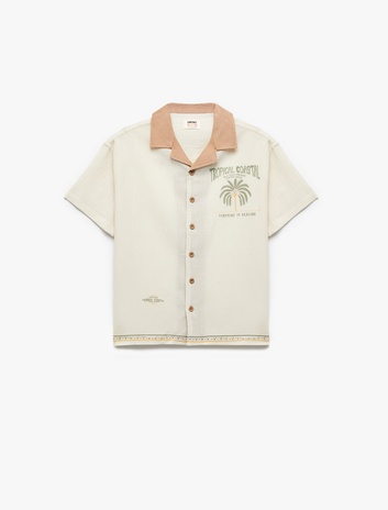Palmiye Baskılı Düğmeli Pamuklu Kısa Kollu Gömlek Sepete Ekle