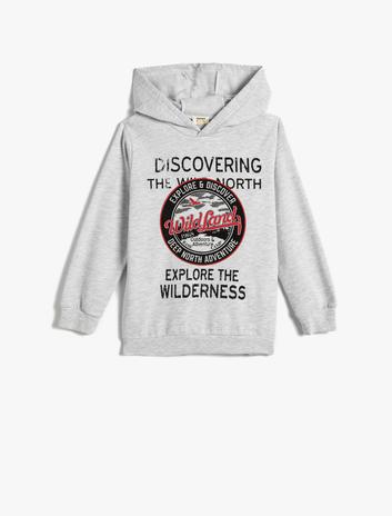 Kapşonlu Sweatshirt Şardonlu Baskılı Uzun Kollu Pamuklu Sepete Ekle