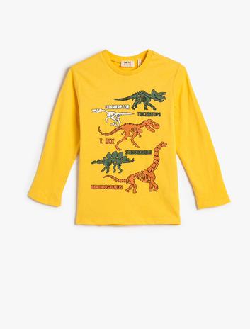 Dinozorlu Tişört Uzun Kollu Bisiklet Yaka Pamuklu Sepete Ekle