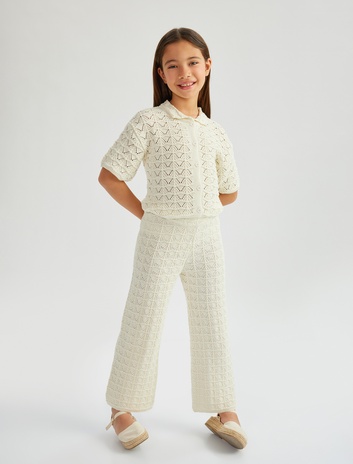 Kız Çocuk Bol Paça Ajurlu Triko Pantolon