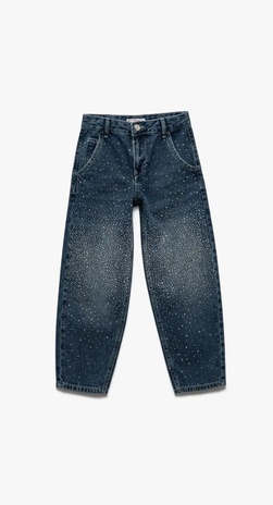 Taş Detaylı Pamuklu Rahat Kesim Denim Pantolon Sepete Ekle