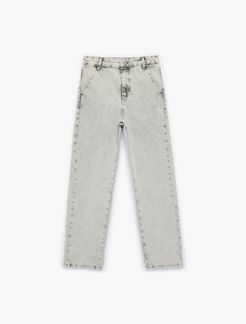 Erkek Çocuk Pamuklu Cepli Rahat Kalıp Yıkamalı Denim Pantolon - Wide Leg Jeans