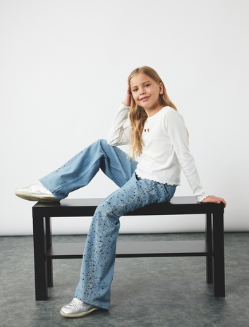 Kız Çocuk Pamuklu Zımba Detaylı Geniş Paça Denim Pantolon