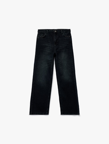 Pamuklu Cep Detaylı Bol Paça Denim Pantolon Sepete Ekle