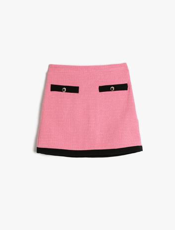 Kız Çocuk Tüvit Etek Cep Aplikeli Renk Kontrastlı Pamuklu