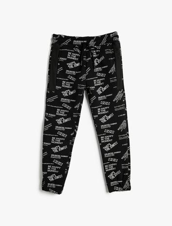 Erkek Çocuk Jogger Eşofman Altı Beli Bağlamalı Cepli Slogan Baskılı Şardonlu