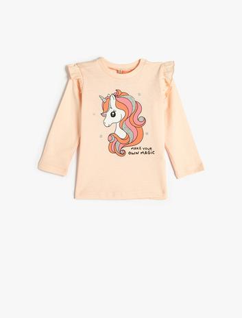 Kız Bebek Tişört Uzun Kollu Yuvarlak Yaka Fırfır Detaylı Kaşkorse Pamuklu