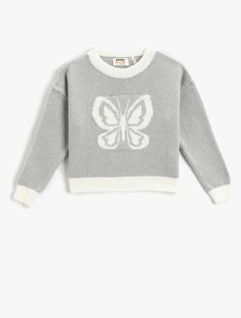 Kız Çocuk Triko Kazak Kelebek Desenli