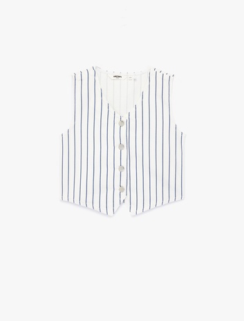 Pamuklu Kolsuz V Yaka Çizgili Denim Yelek Sepete Ekle