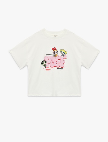 Lisanslı Powerpuff Girls Baskılı Kısa Kollu Bisiklet Yaka Pamuklu Tişört Sepete Ekle