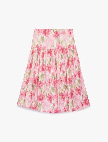 Viskon A Kesim Pileli Çiçek Desenli Viskon Midi Etek Sepete Ekle