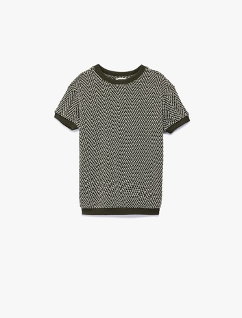 Bisiklet Yaka Balıksırtı Desenli Kısa Kollu Oversize Sweatshirt Sepete Ekle