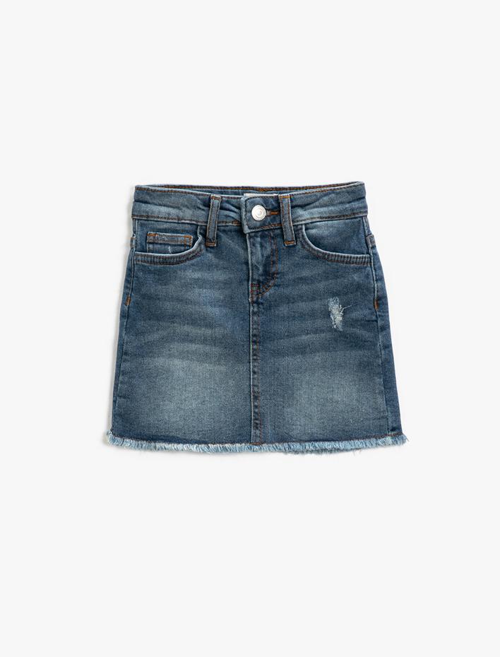 Kız Çocuk Kot Etek Mini Boy Cepli Pamuklu Beli Ayarlanabilir Lastikli