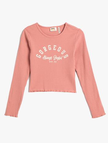 Kız Çocuk Tişört Uzun Kollu Bisiklet Yaka Yazı Baskılı Kaşkorse