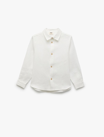 Erkek Çocuk Uzun Kollu Klasik Yaka Keten Gömlek