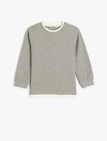 Erkek Çocuk Basic Sweatshirt Bisiklet Yaka Uzun Kollu Dokulu