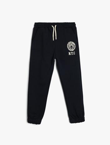 Erkek Çocuk Eşofman Altı Baskı Detaylı Beli Bağlamalı Rahat Kesim Şardonlu