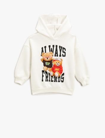 Ayıcık Baskılı Kapşonlu Sweatshirt Uzun Kollu Şardonlu Sepete Ekle