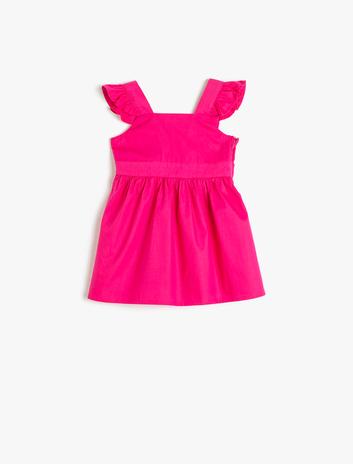Kız Bebek Elbise Keten Karışımlı Fırfırlı Askılı