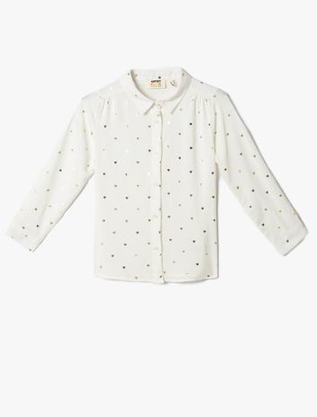 Gömlek Uzun Kollu Parlak Kalp Baskılı Sepete Ekle