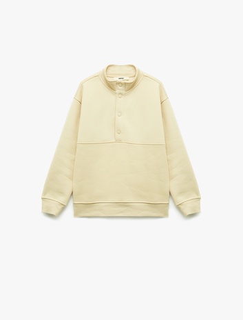 Şardonlu Uzun Kollu Çıtçıt Detaylı Dik Yaka Sweatshirt Sepete Ekle
