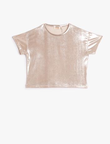 Parlak Bluz Kısa Kollu Bisiklet Yaka Sepete Ekle