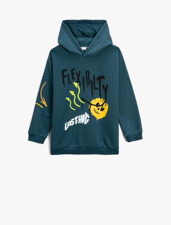 Erkek Çocuk Baskılı Kapüşonlu Sweathirt Uzun Kollu