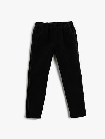 Kız Çocuk Kadife İspanyol Paça Eşofman Altı Beli Lastikli İşleme Detaylı