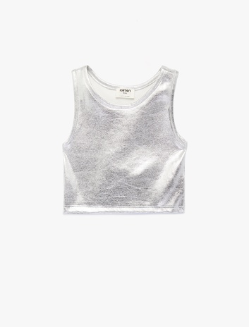 Pamuklu Kolsuz Bisiklet Yaka Slim Fit Parlak Crop Atlet Sepete Ekle