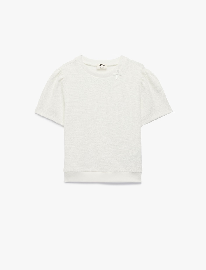 Pamuklu Kısa Kollu Bisiklet Yaka Fiyonklu Bluz Sepete Ekle