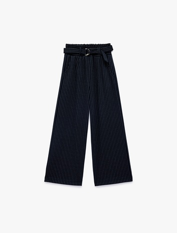 Kemer Detaylı Rahat Kalıp Çizgili Geniş Paça Pantolon Sepete Ekle