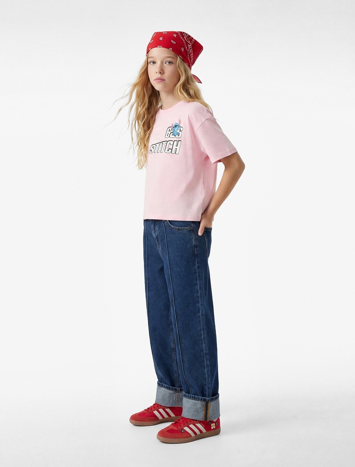Kısa Kollu Bisiklet Yaka Pamuklu Stitch Baskılı Lisanslı Tişört Sepete Ekle