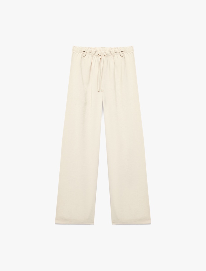 Keten ve Viskon Karışımlı  Beli Bağcıklı Basic Pantolon Sepete Ekle