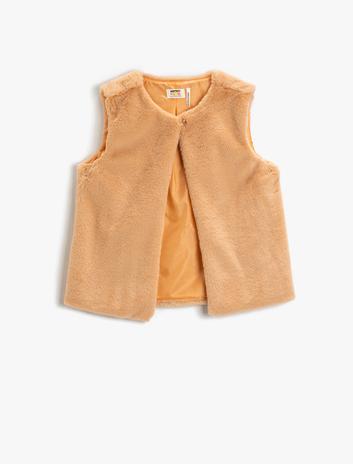 Kız Çocuk Basic Peluş Yelek Yuvarlak Yaka