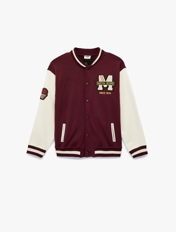 Nakışlı Cepli Renk Bloklu Uzun Kollu Bisiklet Yaka Kolej Ceket Sepete Ekle
