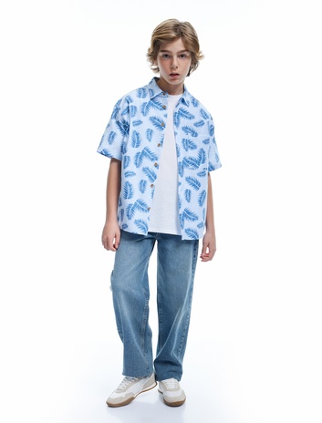 Erkek Çocuk Rahat Kalıp Düğmeli Pamuklu Jean Pantolon
