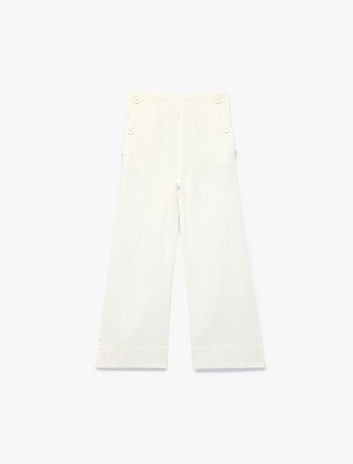 Kız Çocuk Keten ve Viskon Karışımlı Düğmeli Geniş Paça Pantolon