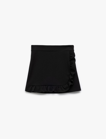 Kız Çocuk Fırfır Detaylı Beli Lastikli Kruvaze Mini Etek
