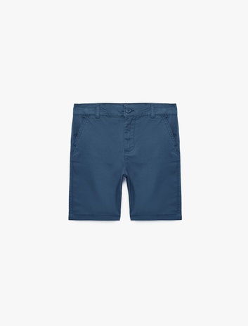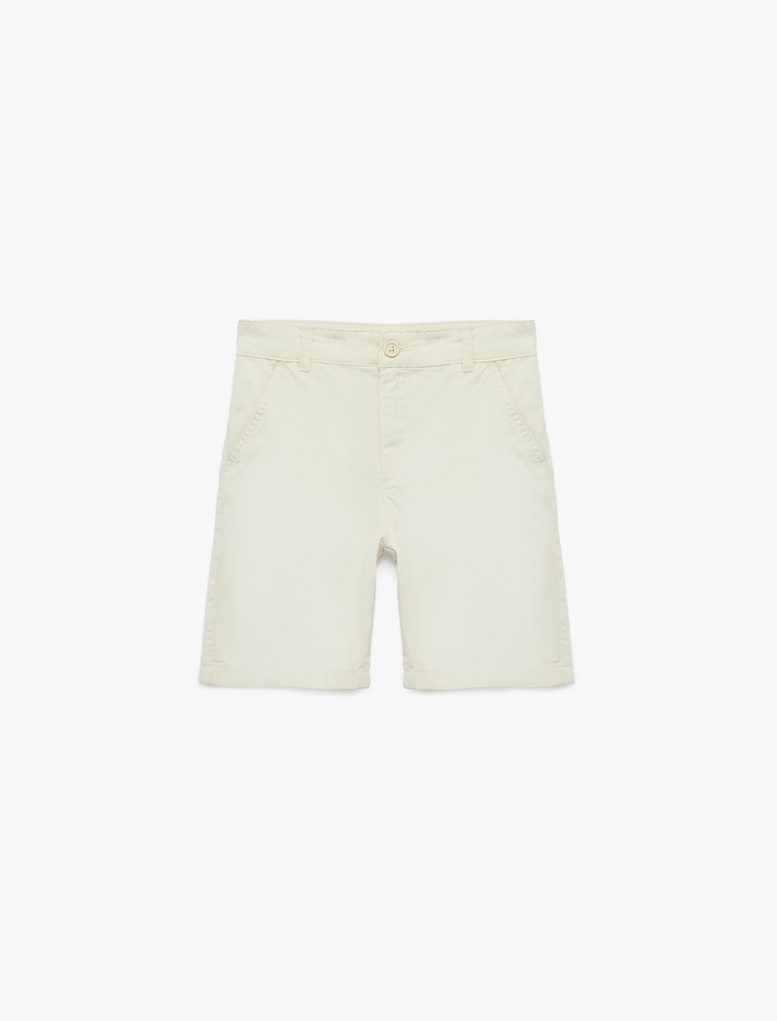 Pamuklu Beli Ayarlanabilir Lastikli Cepli Düğmeli Basic Şort Sepete Ekle