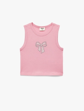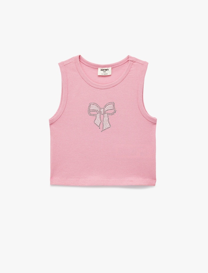 Fiyonk Baskılı Taş Detaylı Bisiklet Yaka Crop Atlet Sepete Ekle
