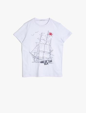 Baskılı Pamuklu Kısa Kollu Bisiklet Yaka Tişört Sepete Ekle