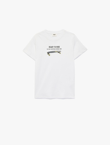 Kısa Kollu Bisiklet Yaka Pamuklu Baskılı Tişört Sepete Ekle